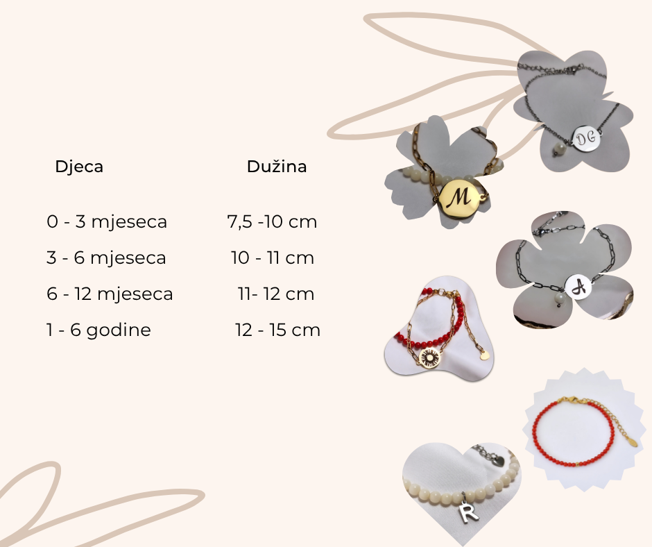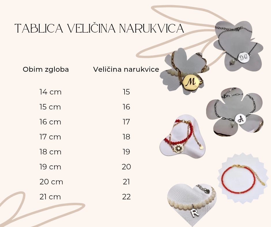 Važna napomena: Molimo da pažljivo odaberete željenu duljinu narukvice prilikom narudžbe. Naknadna korekcija duljine naplaćuje se 15 €, a trošak dostave snosi kupac.
