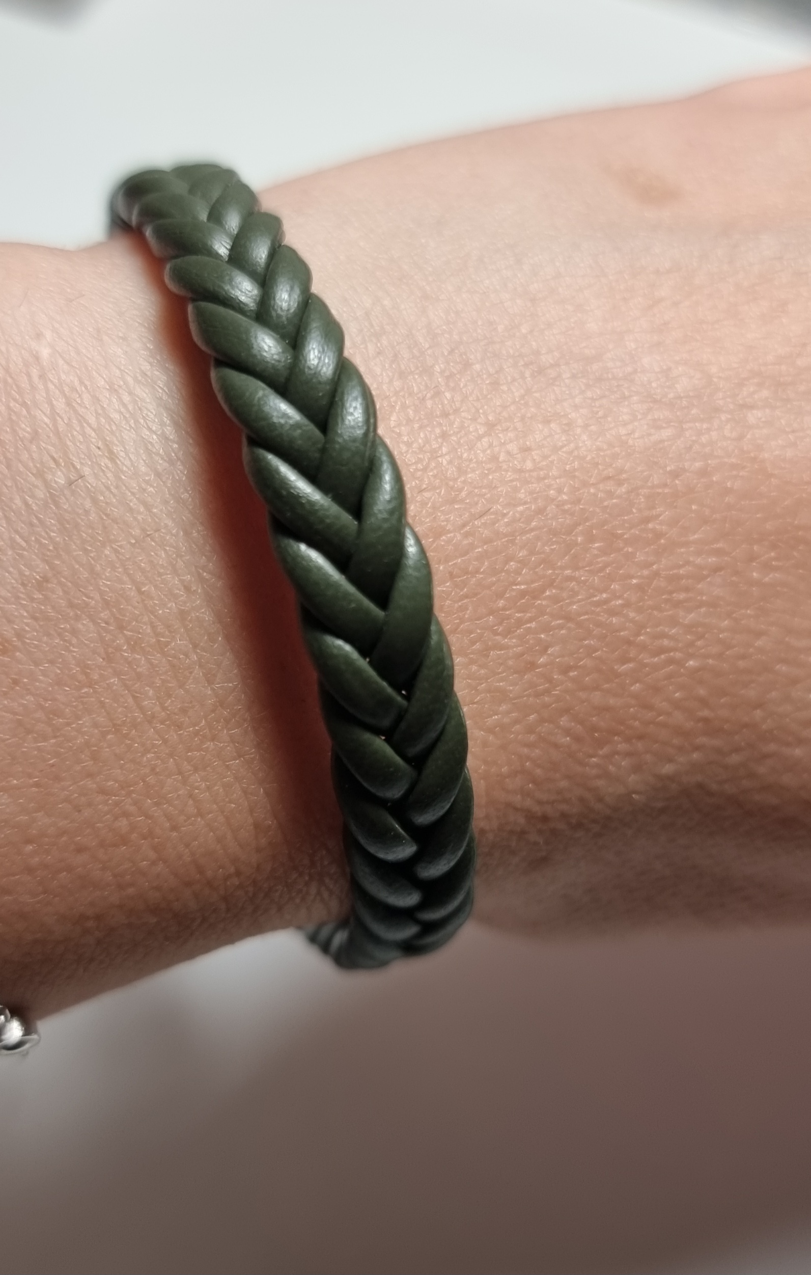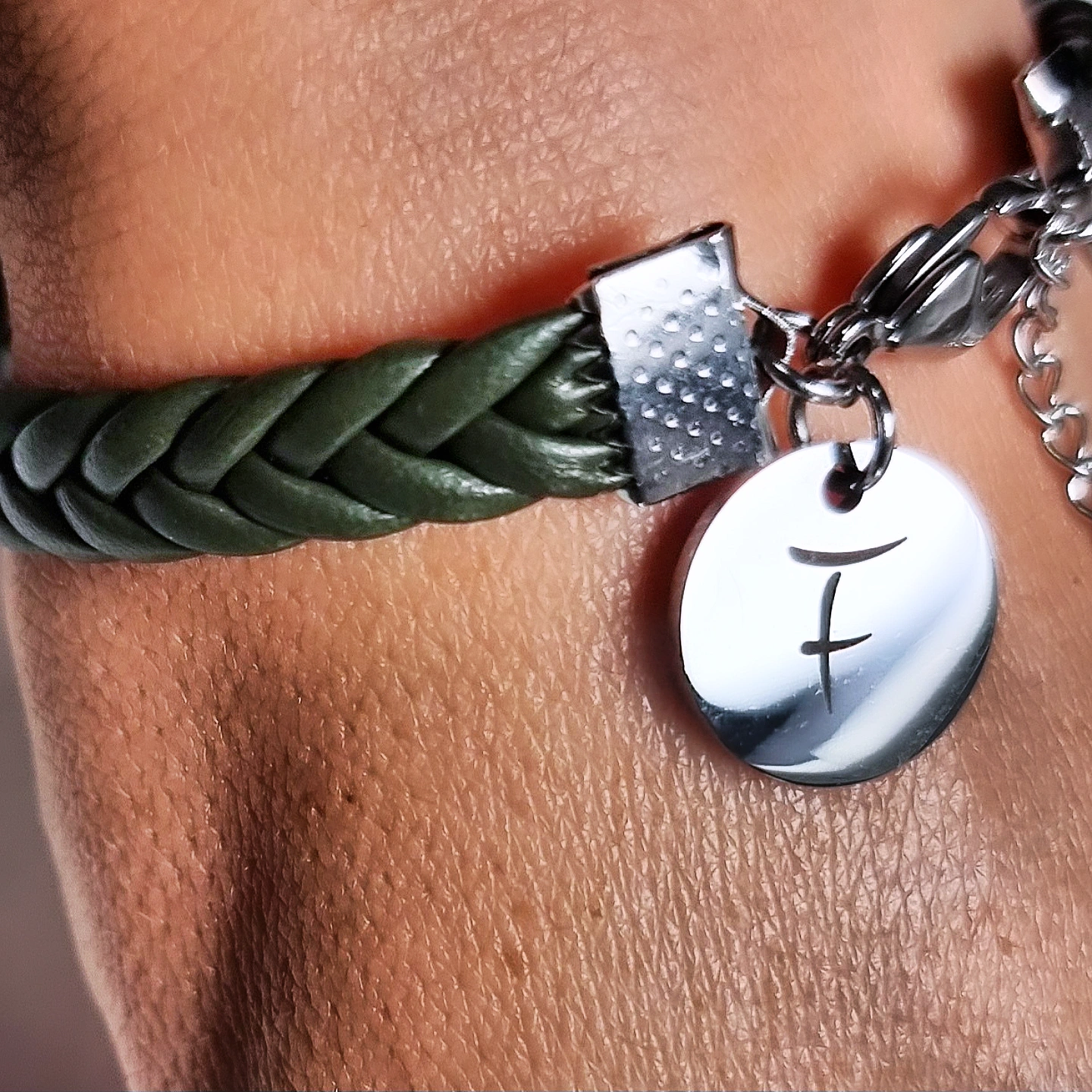 Ručno rađena muška kožna narukvica u zelenoj boji. U cijenu je uključena gravura loga. Personalizirana gravura dostupna je uz nadoplatu od 3 eura.